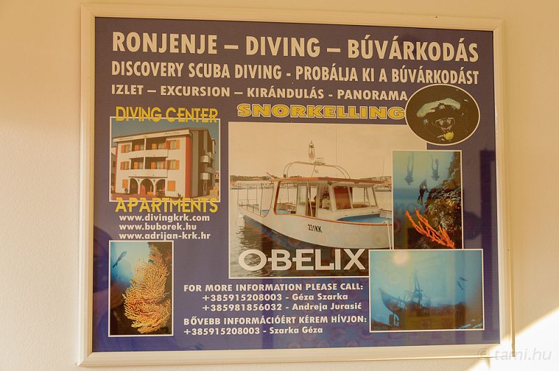 | Fényképezte: Biro Tamas | Fényképező: NIKON D90 | Dátum: 2013-10-03 07:57:35 | ISO: 800 | Exp. mód: Aperture priority | Exp. bias: 0 EV | Expozíció: 1/60s | Blende: 7.1 | Fókusztáv: 45.0mm (~68.6mm) | Fehér-egyensúly: Manual white balance | Vaku: No | Szélesség: N 45°1'8.40" | Hosszúság: E 14°33'53.24" | Magasság: 8 metres | Szerző: Biro Tamas | Város: Krk | Megye/Tartomány: Primorje-Gorski Kotar County | Ország: Croatia | Szerzői jog: copyright © Tami BY-NC-ND | Kulcsszavak: 2013, 2013-10, Horvátország, Krk, búvárkodás, merülés | Térkép |